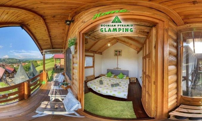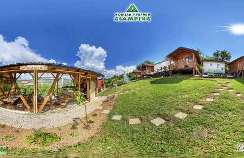 Welcome to Bosnian Pyramid Glamping, located at the foot of the Bosnian Pyramid of the Sun. Glamping consists of six bungalows with six bathrooms, a common kitchen, a common dining room, terraces, a free parking space and a garden.
