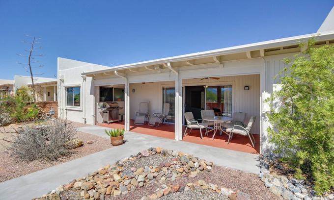 Your next rejuvenating retreat to sunny Arizona awaits with a stay at this idyllic 2-bedroom, 2-bath vacation rental home nestled in a quiet 55+ community! Boasting a warm and welcoming interior, a lovely backyard with an outdoor dining area and beautiful mountain views, and access to a community pool and hot tub, this Green Valley escape will serve as the perfect home-away-from-home! Venture out to peruse the Heirloom Farmers Market, visit Saguaro National Park, or kick back and relax poolside!