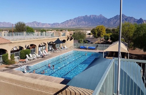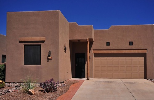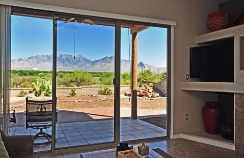 Unobstructed panoramic views of the majestic Santa Rita Mountains from sunrise to sunset! Located on the 14th fairway of Torres Blanca’s Golf Course. Gated 55+ community with optional access to Recreation Center. (covid/state rules apply at rental time)