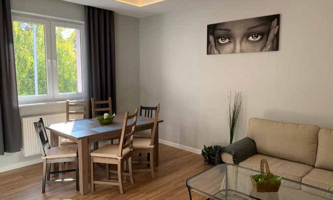Grey apartment 50 m2 offers accommodations in Tarnowskie Góry, 12 miles from Górnik Zabrze and 14 miles from Stadion Śląski. Both free Wifi and parking on-site are accessible at the apartment free of charge. Silesia City Center shopping mall is 17 miles away and Katowice Central Station is 17 miles from the apartment. This apartment includes 1 bedroom, a living room and a flat-screen TV, an equipped kitchen with a dining area, and 1 bathroom with a walk-in shower and a washing machine. Towels and bed linen are offered in the apartment. This apartment is allergy-free and non-smoking. A water park is also available for guests at Grey apartment 50 m2. Ruch Chorzów Stadium is 14 miles from the accommodation, while FairExpo Convention Center is 16 miles from the property. Katowice Airport is 11 miles away.