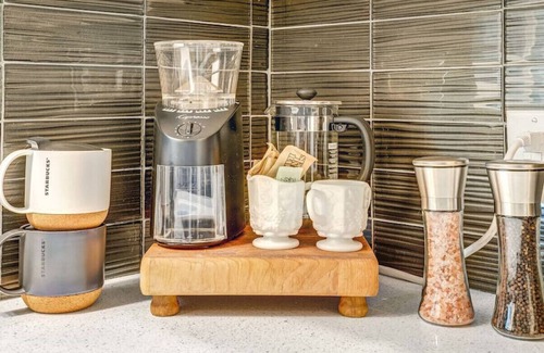 Unexpected guests? Our leather sleeper sofa has got you covered, complete with extra plush linens for a cozy night`s sleep. The kitchen beckons culinary enthusiasts, equipped with every essential and paired with an intimate dining setting for two. As dusk settles, the king bedroom, adorned with custom hotel-quality linens, promises a serene escape. Plus, the adjoining walk-in closet, besides catering to your fashion collection, thoughtfully houses a washer and dryer.