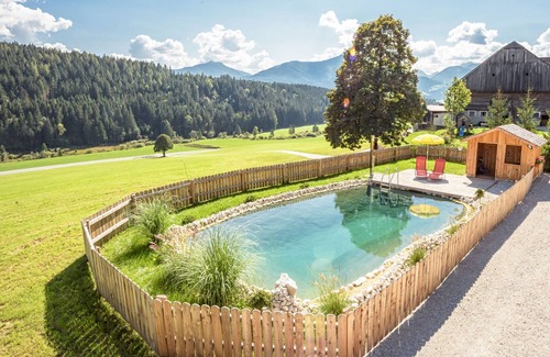 Very beautiful, cosy, comfortable timber house 800 m a.s.l surrounded by trees and meadows. 2 houses in the residence. In the district of Kranzbach 3 km from the centre of Gröbming, 14 km from the centre of Haus im Ennstal, 22 km from the centre of Schladming, in a sunny position on a slope, 11 km from the lake, 13 km from the skiing area, in the countryside. For shared use: natural state property 30 ha with meadow, courtyard, swimming pool round fenced (10 x 5 m, depth 100 - 280 cm, seasonal availability: 01.Jan. - 31.Dec.). Terrace, garden furniture. In the house: storage room for skis, ski boot dryer. In Winter: please take snow chains. Communal covered parking at the house. Supermarket 3 km, restaurant 3 km, bus stop 200 m, railway station "Stein an der Enns" 5 km, outdoor swimming pool 3 km, bathing lake "Aich" 11 km. Mountain railway 16 km, ski lift 13 km. Well-known ski regions can easily be reached: Hauser Kaibling 14 km. Please note: the owner lives on the same property. Property ref. AT8962.636.1/2 is situated on the same property. The complex has another 1 chalet for rent.