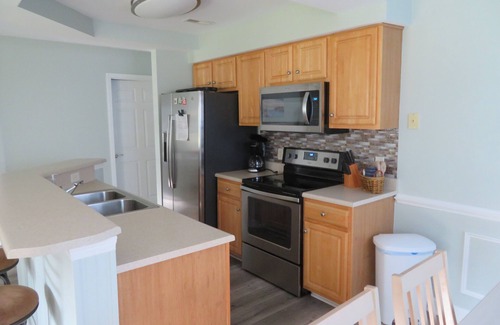Beautiful 2BR/2BA Ground Floor Unit On The Golf Course, Sleeps 4-6. Ground floor unit facing the first tee of the 27 hole Brunswick Plantation Golf Resort. Bright and airy living space with plenty of sunshine through the sliding glass doors in the updated living room and large dining room windows with a 55" HDTV. The main bedroom features a king size bed, HDTV and bath. The second bedroom features 2 full size beds, HDTV, a kitchenette and a private bath with a tub. Fully equipped kitchen includes a breakfast bar, coffee maker, dishwasher and ice maker. Washer and dryer are included for your convenience. Linens and towels are provided. Roku steaming is included on all TV's.