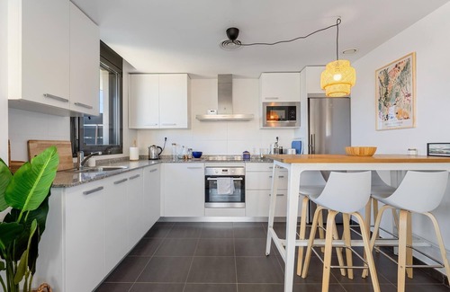 The apartment of 85m2 is located in the privileged urbanization Roques Daurades de l'Ametlla de Mar facing the sea only 2km from the town center, 45km from Port Aventura and 22km from Reus Airport. It is located on the ground floor and has a large terrace with outdoor furniture, barbecue and a private garden, in addition to a multitude of community spaces such as a swimming pool for adults and children, paddle tennis and pickleball court, basketball court, playground and a small supermarket. The three bedrooms have a double bed, two single beds and a trundle bed for two guests, in addition to the sofa bed in the living room. You will find two complete bathrooms with shower and bath, equipped kitchen, Nespresso capsule coffee maker, air conditioning, heating, flat screen TV, Wi-Fi throughout the establishment, free parking and sheets and towels included. Key collection takes place from 4pm to 9pm with an option to extend. It is a smoke-free apartment. At the check in you will be asked for the tourist tax of 1.00 x person x night and the documentation. We don't accept groups under 25 years. We will be at your disposal almost 24h for anything you may need during the stay.