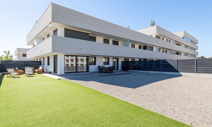 Ground floor with barbecue 1min beach is located in Roques Daurades. Ground floor with barbecue 1min beach provides accommodation, featuring Parking, Wheelchair Accessible, Fireplace/Heating, among other amenities. This Apartment features Parking, Wheelchair Accessible, Fireplace/Heating, to make your stay a comfortable one.