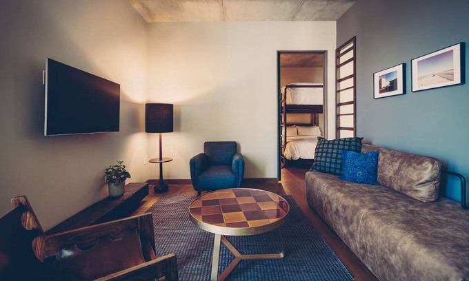 Set in Austin’s liveliest neighborhood, the hotel is perfect for groups looking to explore and unwind. The Bunkroom Suite includes two queen bunks, a lounge area, and a balcony.