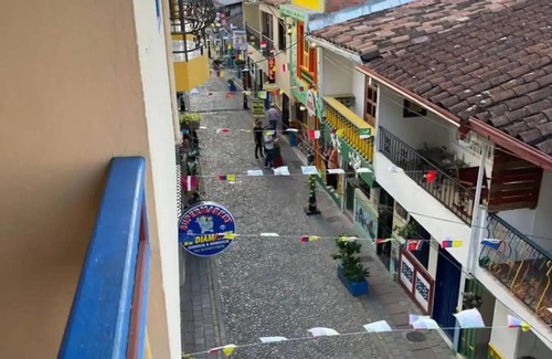 Lindo edificio en la plaza central de Guatapé a 3 minutos caminando del malecón y la represa. Agradable balcon con vista al la plaza.