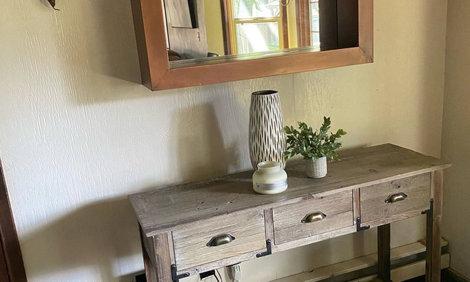 You can expect a cozy and updated experience with all the amenities of a home away from home. Sleep 5 comfortably in the beds provided. Use the full kitchen to cook your meals or escape to a local favorite restaurant! There are two bathrooms in the house, one is a full bath and the other is a 1/2 bath. There is also a cozy outdoor area for coffee in the morning or a fire in the fire pit!