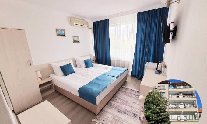 A 7-minute walk from South Beach Nessebar, Guest House Kolev - central features 2-star accommodations in the Nesebar New Town district of Nesebar. This guest house offers air-conditioned accommodations with a terrace and free Wifi. The accommodation provides daily room service, a mini-market, and currency exchange for guests. At the guest house, the units have a desk, a flat-screen TV, a private bathroom, bed linen, and towels. A balcony with an outdoor dining area and city views is offered in each unit. At the guest house, each unit comes with a seating area. Old Nesebar is a 16-minute walk from the guest house, while Action AquaPark is 4 miles from the property. Burgas Airport is 17 miles away.