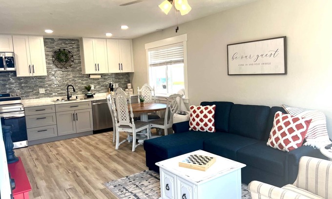 1 bedroom, 1 bath unit with laundry and pull-out couch. Laundry center in the unit. No detail had been overlooked. Professionally clean, renovated, and opened in July 2022. Looks out onto the courtyard. Minutes to the airport, green belt, Mountain America Center, and downtown Idaho Falls. Close to Yellowstone National Park, the Grand Tetons, Heise Hot Springs, Lava Hot Springs, Craters of the Moon, and Island Park.
