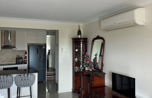 Beautiful and clean one bedroom fully furnished we have aircon , kitchen with oven cooktop dishwasher and microwave coffee and tea and a fridge. Living area with comfortable leather lounges, TV, dining table and coffee table. One bedroom with queen size bed ensuite bathroom with washing machine and dryer. Close walk to shops and short drive to lake with beautiful views walking track and bike track if you have a JetSki or small boat there is a bistro located there. We have a swimming pool at the property