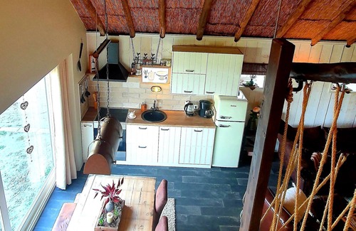 Completely furnished with kitchen, bathroom, living room, 1 bedroom on the ground floor. An open loft with a double bed. Hallway with separate toilet.