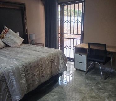 Featuring a garden, Gugulethu Villa provides accommodations in Rensburgdorp. The air-conditioned accommodation is 20 miles from Engineers Golf Club, and guests can benefit from on-site private parking and complimentary Wifi. Staff on site can arrange a shuttle service. Providing a terrace and garden views, the villa includes 2 bedrooms, a living room, satellite flat-screen TV, an equipped kitchen, and 1 bathroom with a bath and a shower. For added privacy, the accommodation has a private entrance and is protected by full-day security. Kliprivier Country Club is 23 miles from the villa, while Meyerton Golf Club is 24 miles away. O.R. Tambo International Airport is 34 miles from the property.
