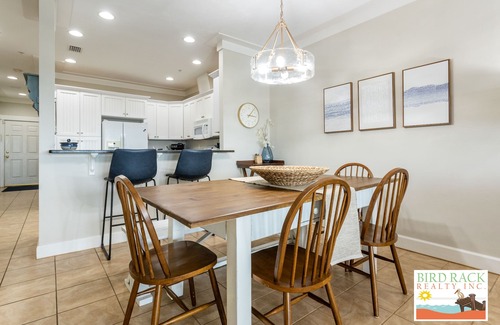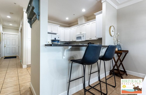 The condo is comfortably furnished and has a king bed in the master bedroom, which features a large master bedroom window overlooking the serene Gulf of Mexico. The master suite has a jacuzzi tub, shower, his/her vanities and toilet room. The second bedroom features a king size bed, and the third bedroom is furnished with a queen/twin bunk bed. The large, well-stocked kitchen has everything you need to prepare your catch of the day.