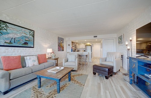 We front on the GULF! Condo VIEW OF THE GULF! We are back and better than ever! Totally rehabbed unit, new open concept kitchen, quartz counter top and new appliances. New bathrooms and new furnishings. Coral Cay is perfectly situated, fronting the gulf on 7 acres of landscaped grounds. Enjoy the two pools. Outside grill areas. A great place for you to relax and the children play!