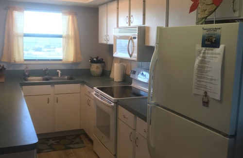 Come visit and stay awhile on our beautiful white sandy beaches of Florida located on the shores of Navarre Beach. Our guests will have an awesome view of the Gulf of Mexico from the living room and master bedroom as well as a view of the inter-coastal waters from the kitchen window. The waterfront balcony is adjoined only on one side for more privacy, in this 4th floor condo. The kitchen with an abundance of counter space, has all the essentials for serving any meal. This condo is a 2 bedroom 2 bathroom unit with 1 king, 1 queen and 1 twin bed and a sleeper sofa to sleep up to 7 people. Come stay with us for awhile we are sure you will be pleased with your choice.