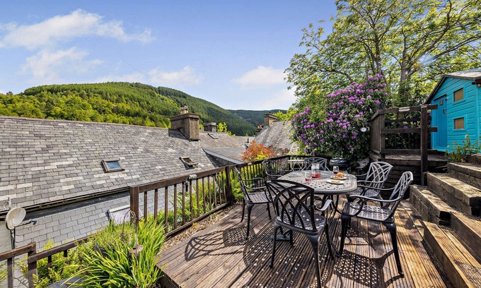 Located in southern Snowdonia, this welcoming cottage has been thoughtfully renovated from two former quarry-man cottages in the village of Corris Uchaf. Excellent location between the sandy beaches and Snowdonia peaks and also central to the market towns of Machynlleth and Dolgellau. Plenty of amenities and attractions on the doorstep, including a cafe and village shop, underground tours and craft centre in the village itself.Spacious, per-friendly cottage with a log fire, enclosed terraced garden with ever-changing views over hills to Cadair Idris.