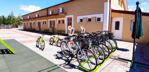 Gyepszél Panzió Tokaj in Tokaj provides accommodations with a terrace and a shared lounge. Guests staying at this bed and breakfast have access to a patio. The bed and breakfast offers rooms with air conditioning, free private parking, and free Wifi. At the bed and breakfast, each unit comes with a desk, a flat-screen TV, a private bathroom, bed linen, and towels. A microwave and fridge are also featured, as well as a coffee machine and a kettle. The rooms are equipped with heating facilities. There is an on-site coffee shop, and during warmer months you can make use of the barbecue facilities. The area is popular for fishing, and free use of bicycles is available at the bed and breakfast. Guests can also warm up near the outdoor fireplace after a day of cycling. Debrecen International Airport is 53 miles away.