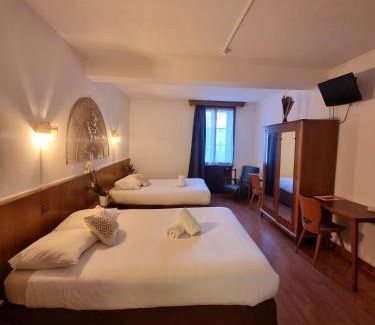 Hotel les Alliés offers a warm and friendly welcome in the heart of Pont d’Ain, just 1640 feet from A42 Highway Exit. The bright, modern and comfortable rooms are soundproofed and include free Wi-Fi internet access. The hotel is close to several excellent restaurants serving local specialties. The nearby River Ain is a great place for fishing and water sports. Ski-enthusiasts will appreciate the ski area in Hauteville, 16 miles away from the hotel.