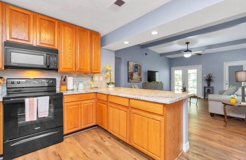 H-Town Hideout | SLPS 10 + KingBD + Fire Pit has 3 Bedrooms , 2 Bathrooms, and max occupancy of 9 people. The minimum rental for this property is 1 nights, but this can change depending on the season you plan on staying. Previous guests have given good rated it, and VRBO labeled it a top-rated House because of the excellent services rendered by the owner or manager of this House, and has consistently provided great experiences for their guests. Most families or guests that use it recommend it to their friends and some of them are repeat guests. House has a friendly neighborhood, and the Spring Branch West has interesting places to visit. If you want to learn more about the House in Spring Branch West, such as places to visit and things to do nearby, you can check below to learn more.