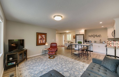This modern, stylish and quiet home rests in Boise's tree filled south east neighborhood. Fully remodeled in 2021, this 2 bedroom, 1 bath home is attached to a larger house with one wall in the kitchen & living room shared with the main house. Perfect for 1-2 couples visiting friends or family in the neighborhood or here to explore Boise. Very close to all of the cute Bown crossing restaurants and shops with the vibrant downtown Boise about 10 minutes away where you can enjoy a large variety of restaurants, shopping, the Boise Greenbelt, Parks, Museums, etc. Truly perfect for visiting family and friends in East Boise!