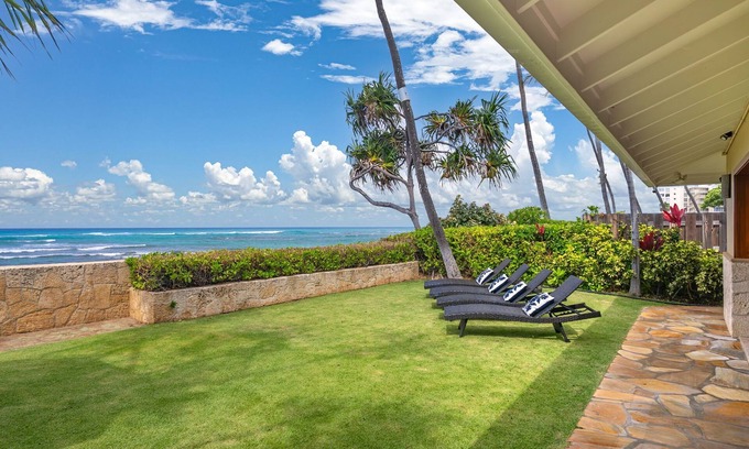 Ideally positioned along Honolulu’s prestigious Gold Coast with Diamond Head Crater as its backdrop, Hale Makai at Diamond Head is a licensed nightly oceanfront rental (NUC 90/TVU-0390) offering luxury, privacy, and the rhythm of true island life—just three miles from Waikiki. This 2,208-square-foot home accommodates up to eight guests across three ensuite bedrooms, combining modern comfort with stunning ocean vistas and gentle trade-wind breezes.