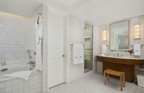 Halekulani offers 453 accommodations with safes and complimentary newspapers. Rooms open to lanais. Beds feature premium bedding. 40-inch LCD televisions come with premium cable channels. Bathrooms include separate bathtubs and showers with deep soaking bathtubs, bathrobes, slippers, and designer toiletries.