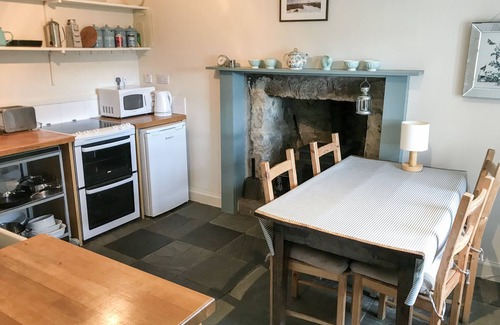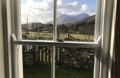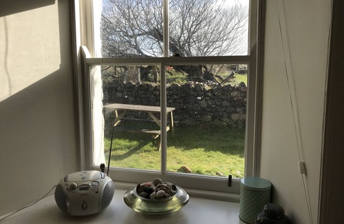 Amenities: Electric heating with open fire and multi-fuel stove. Electric oven and hob, microwave, fridge, dishwasher, washer/dryer, TV with Freeview, WiFi, DVD, CD, selection of books, games and DVDs. Electric included in rent. Fuel for stove and fire available to purchase locally. Bed linen and towels. inc in rent. Travel cot and highchair available on request. Parking. Garden with picnic tables and benches. Maximum of one well-behaved pet welcome. Sorry, no smoking. Shop and pub 7 miles. Note: Sloping ceilings on first floor. Note: Dogs to be kept under control when outside. Sheep in the neighbouring fields. Note: The cottage has a private water supply, bottled drinking water will be supplied. Note: The house is accessed by a hard core (but not tarmac) track approximately 800 metres long. The track climbs up a hill and is a little steep in places