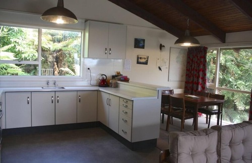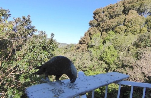 Relax and enjoy the abundance of birds - tui, kaka, and kereru from the deck. With sea views in a private surrounding.