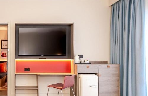 Food & DrinkTea/Coffee makerBathroomConditioner, Hairdryer, Towels, Free toiletries, Walk-in shower, Toilet paper, Private bathroom, Shampoo, Bathtub or shower, Body soap, Shower, ToiletGeneralLaptop safe, Privacy curtain, Heating, Ironing facilities, Safe, Iron, Interconnecting room(s) available, Air conditioning, Key card access, Smoke AlarmMedia & TechnologyFlat-screen TV, TV, TelephoneOutdoorsBalconyKitchenElectric kettle, RefrigeratorLiving AreaSitting area, DeskAccessibilityAccessible by elevator, Upper floors accessible by elevator |