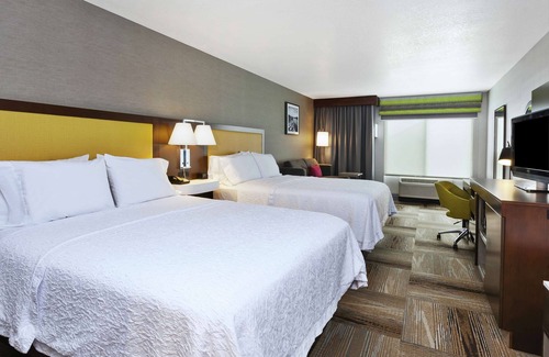 Hampton Inn Idaho Falls At the Mall offers 79 air-conditioned accommodations with coffee/tea makers and complimentary weekday newspapers. Pillowtop beds feature down comforters and premium bedding. 32-inch LCD televisions come with premium satellite channels. Refrigerators and microwaves are provided. Bathrooms include shower/tub combinations, complimentary toiletries, and hair dryers.
