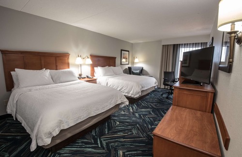 Hampton Inn Louisville-North/Clarksville offers 119 accommodations with coffee/tea makers and hair dryers. Premium cable television is provided. Guests can make use of the in-room refrigerators and microwaves. Bathrooms include shower/tub combinations and complimentary toiletries.