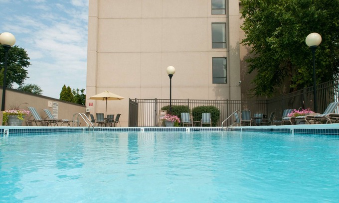 Recreational amenities at the hotel include a fitness center and a seasonal outdoor pool.