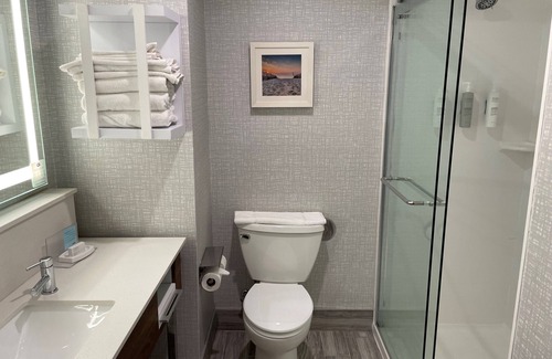 Hampton Inn Old Bridge offers 100 air-conditioned accommodations with safes and hair dryers. Pillowtop beds feature premium bedding. A pillow menu is available. 50-inch flat-screen televisions come with premium cable channels. Bathrooms include bathtubs or showers with rainfall showerheads and hydromassage showerheads.