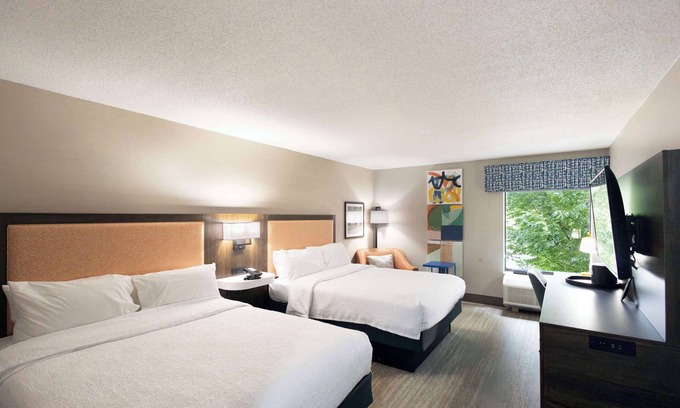 Hampton Inn Springfield offers 100 air-conditioned accommodations with safes and coffee/tea makers. Cable television is provided. Refrigerators and microwaves are provided.