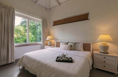 Providing a bar, Hamptons Charm by StayVista Luxury 5BR with Pool, lawn & table tennis features accommodations in Alibaug. This property offers a private pool, free Wifi, and free private parking. Staff on site can arrange a shuttle service. Featuring a balcony and pool views, the spacious villa includes 5 bedrooms, 2 living rooms, flat-screen TV, an equipped kitchen, and 5 bathrooms with a bath and a shower. Guests can enjoy a meal on an outdoor dining area while overlooking the garden views. The villa offers bed linen, towels, and daily room service. You can play table tennis at the villa. Outdoor play equipment is also available at Hamptons Charm by StayVista Luxury 5BR with Pool, lawn & table tennis, while guests can also relax in the garden. Chhatrapati Shivaji International Mumbai Airport is 61 miles from the property, and the property offers a paid airport shuttle service.
