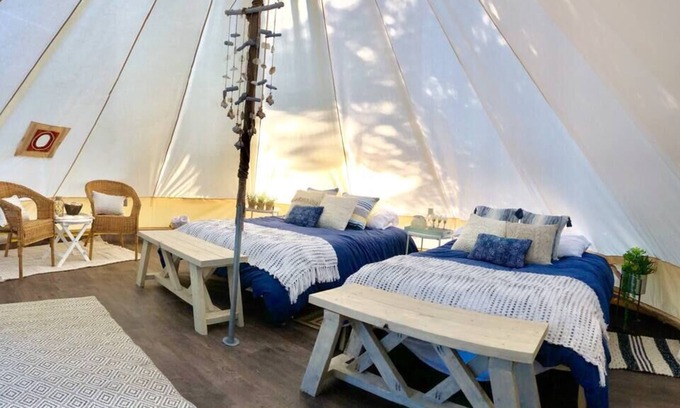 This canvas bell tent is the perfect space for a fun outdoor escape, accommodating up to 4 adults. It is located on 37 acres of treed property beside Hemmer Provincial Park, with many beautiful hikes nearby. Tent includes a picnic table, fire pit, propane stove, cooler, and cooking kit.