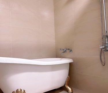 Food & DrinkTea/Coffee makerBathroomPrivate bathroom, Shower, Slippers, Toilet, Towels, Body soap, Toilet paper, Toothbrush, Shampoo, Spa tub, Conditioner, Free toiletries, Shower cap, HairdryerMedia & TechnologyStreaming service (like Netflix), Cable channels, Flat-screen TV, TV, Satellite channelsGeneralSoundproof, Tile/Marble floor, Lockers, Fan, Key access, Air conditioning, Trash cans, Fire extinguisherOutdoorsBalconyLiving AreaSitting areaKitchenCleaning productsBedroomLinensRoom AmenitiesClothes rack, Feather pillow, Drying rack for clothing, Socket near the bed |