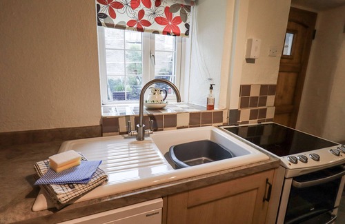 Amenities: Storage panel heaters with multi fuel stove in sitting room. Electric cooker, microwave, fridge/freezer, washing machine, dishwasher, TV with FreeSat, DVD, radio/CD, WiFi, selection of books and DVDs. Fuel, power and starter pack for multi fuel stove inc. in rent. Bed linen and towels inc. in rent. Cot and highchair on request. Off road parking for one car (in pub car park). Spacious shared enclosed garden with furniture. Two well-behaved pets welcome. Sorry, no smoking. Shop 6 miles, pub 1 min walk.