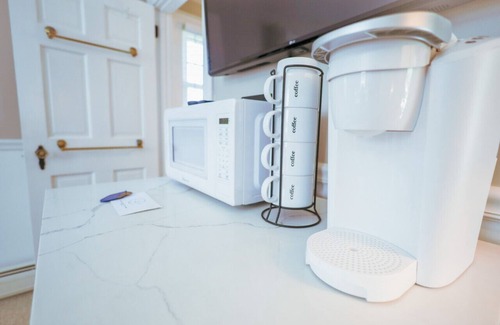 Enjoy this classic cape cod oasis directly across the street from Allan Harbor. This space has a private entrance with a table for 2, where you can sit, relax and enjoy the fresh air off the comfort of your room. This space has a king size bed, tv, A.C. unit and heat. Your unit is equipped with a mini fridge, microwave and coffee Keurig machine (with k-cups provided). Lastly, your own private bathroom and shower with towels and linens are provided. NO PETS ALLOWED IN UNIT