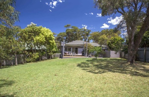 The home has 2 bedrooms and a sunroom at the back with a set of bunk beds. There is a shady back deck with a BBQ, and a large grassy open garden to enjoy ball games with the family
