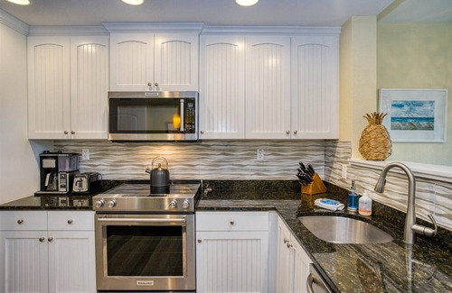 This condo offers plenty of amenities. You can spend your day at the beach that's just 2 blocks away or choose to spend it at the on-site "Splash Harbour" water park. Rental includes 4 complimentary passes to the water park per day. The park has two 42-foot water slides, a lazy river, a large zero-entry pool, plenty of sun loungers, a tiki bar, quick service food, and an area for the smallest guests in the kid's zone with size-appropriate slides and water features. Free Wi-Fi and parking are included. There's also an arcade, mini golf, and restaurant on the property.
