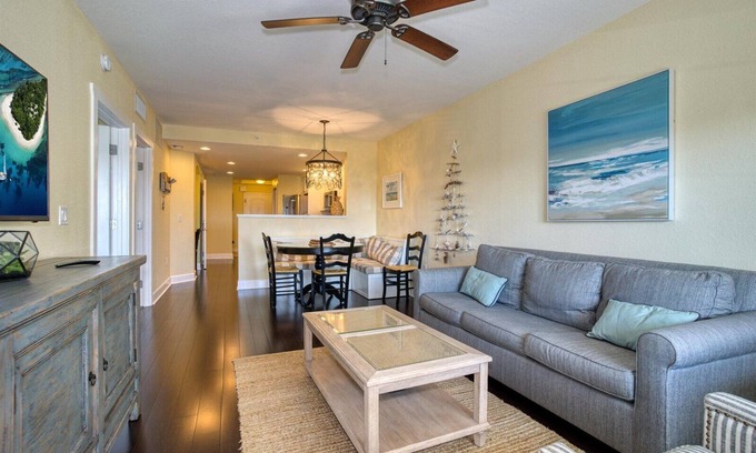 This two-bedroom two two-bathroom condo offers a relaxing, quiet atmosphere and beachy home feeling. It is beautifully decorated and has all-new appliances!