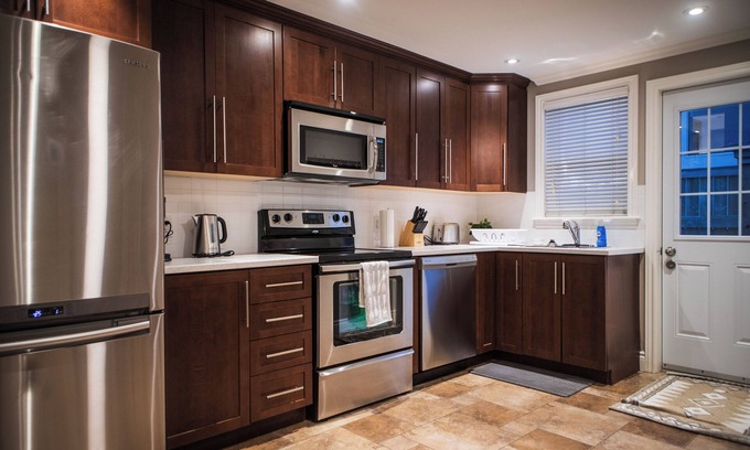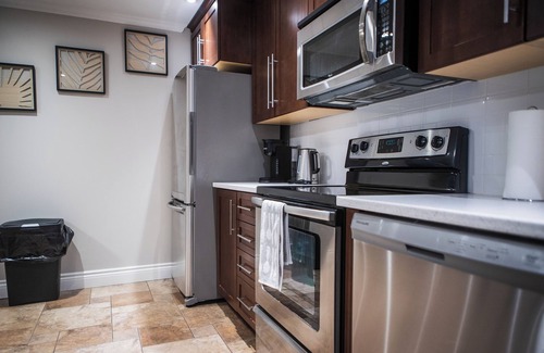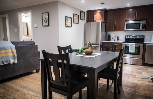 This apartment is equipped to accommodate up to 5 people. The main area has an open space concept with full kitchen, eat in dining and cozy living room. A full bathroom has a titled tub and shower and laundry facilities. This is a secure, fully furnished, ideally located apartment for your visit to St. John's.