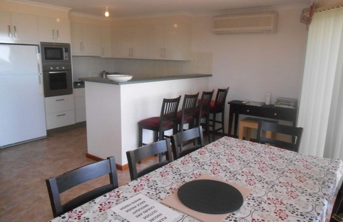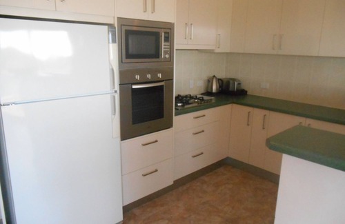 Upstairs: Open plan kitchen with microwave, fridge/freezer, oven, dining, reverse cycle split system air-conditioner, living area with TV no DVD, balcony with outdoor setting, all bedrooms have ceiling fans, bathroom with vanity, shower and w/c.