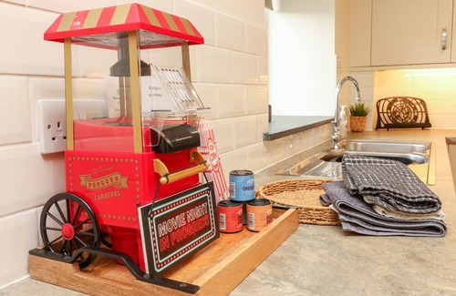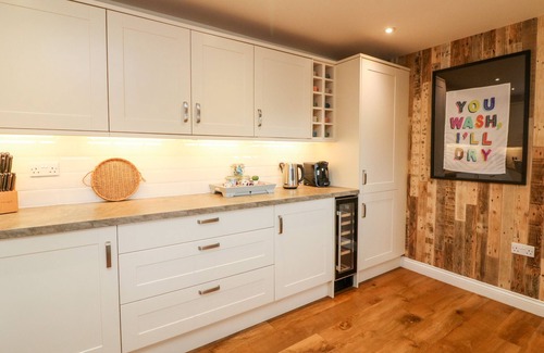 Amenities: Gas central heating, underfloor heating (ground-floor only). Electric range oven, gas hob, microwave, fridge/freezer, wine cooler, washing machine, dishwasher, popcorn maker, coffee machine. 6 x Smart TVs, pull down cinema screen and projector, WiFi, selection of games. Fuel and power inc. in rent. Bed linen and towels inc. in rent. Travel cot and highchair available. Off-road parking for 4 cars, additional parking available if required. Enclosed rear garden, large patio and grassed area with outdoor sofa and dining for 10 and barbecue, and access to 11-acres for dog walking. Three well-behaved dogs welcome at £25 each per full or part week. Sorry, no smoking. Shop 3.3 miles, pub 3.4 miles. Note: There are steps up to the downstairs bedroom area. Note: Check-in from 4pm, check-out at 10am
