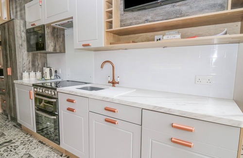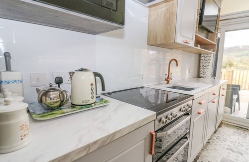 One mezzanine double bedroom with a king-size pull-out sofa bed and a double pull-down bed on the ground-floor. Ground-floor shower room and an open-plan living space with a kitchen, dining area and sitting area with sofa bed and flame-effect electric fire. The central heating is provided by gas. The kitchen is equipped with a gas oven and hob, a microwave, kettle, toaster and fridge with icebox. Guests can keep entertained with the use of a TV and WiFi. Fuel, power, bed linen and towels are all included in the rental price. Outside there is an enclosed garden with a lawn and hot tub, as well as a decked area with furniture. There is off-road parking. Smoking is not permitted at this property. There is a shop and pub within 4.2 miles. Guests should be aware that the mezzanine bedroom is accessed via a ladder and there are a handful of steps leading up to the decked area that may not be suitable for guests with limited mobility. Escape the hustle and bustle of everyday life with a retreat to Hares Rest.