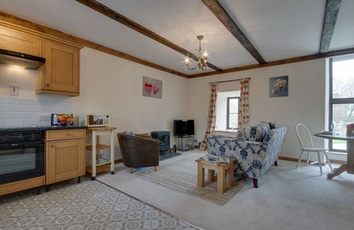 Standard: Kettle, Toaster, Iron, Utilities: Electric oven and hob, Microwave, Fridge, Freezer, dishwasher. Rooms: 1 Bedroom, 1 bathroom with shower over bath, WC and basin, Living, dining and kitchen Beds: Kingsize bed (1) Other: Linen and towels provided (please bring your own beach and swimming pool towels). Adults only. Outdoors: Shared use of heated indoor swimming pool(open 9am - 7pm May to Sept) large terrace. Private patio area and visitors are welcome to visit wildlife pond within the grounds.