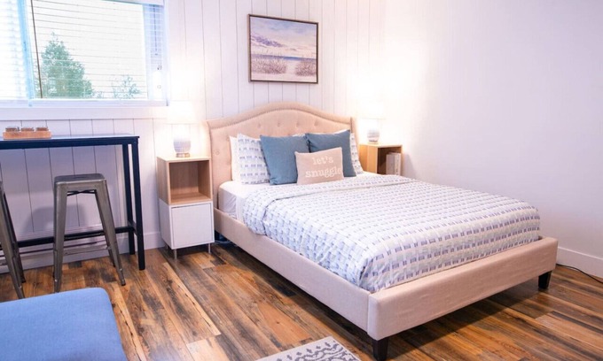 ✦ A warm and welcoming studio featuring a queen bed, double pull-out couch, dining table, and thoughtful layout. Unwind after a day by the lake or exploring the trails.