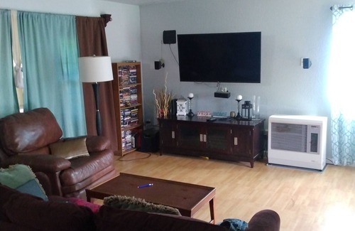 Minutes away from Government peak recreational area and two stop signs away from Hatchers Pass, there is no shortage of mountain trails and slopes to explore. Whether its hiking, biking, downhill, or cross country skiing, berry picking, or gold panning, no shortage of fresh air in these hills! Fenced in back yard to keep your four legged friends safe when you get back.